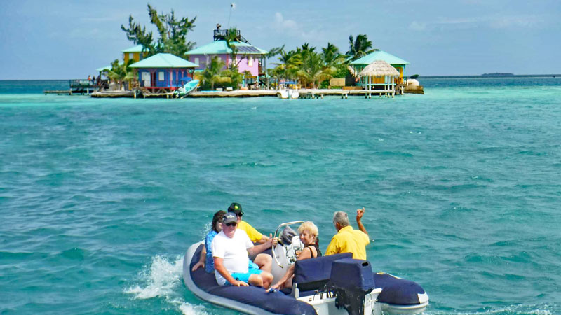 The offshore cays of Belize are mostly uninhabited, except for a possible seasonal fishing shack. However, there is a choice of interesting beach bars and eateries available in the cays as an occasional change from life on board Dreaming On.