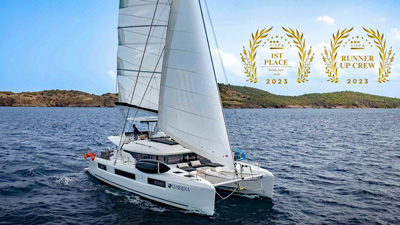 Take [see amount in listing below] off standard rates for new bookings of full-boat charters taking place between April 1 and August 20, 2025. This offer has a six-night minimum. For example, if the catamaran is listed for a maximum of 8 guests, then the stated discount is for an 8-guest charter. This special can be pro-rated for 6-night charters and fewer guests.